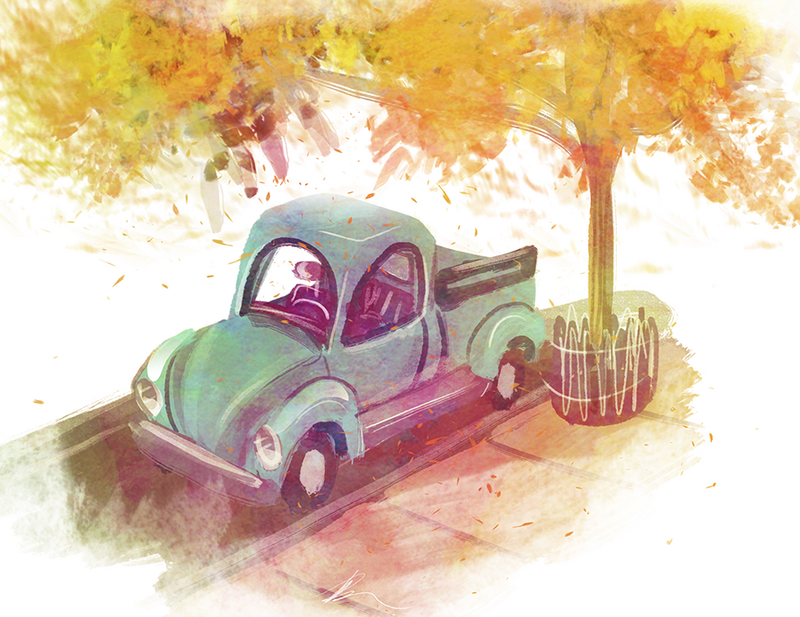 Ava lives with her father in a NYC town home neighborhood. With space as a premium, their living space also doubles as a wood carving studio. Phil's vehicle reflects his need to ship and repair carousel horses while still reflecting his warm, old fashioned personality. Ava's horse toy takes center stage in parts of the film, and while well loved also needed to project how much care Ava takes in keeping her plush toy in good condition like how her father takes care of his carved horses.