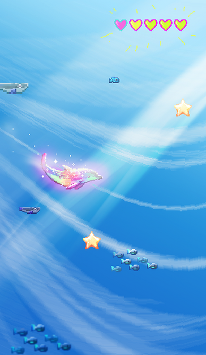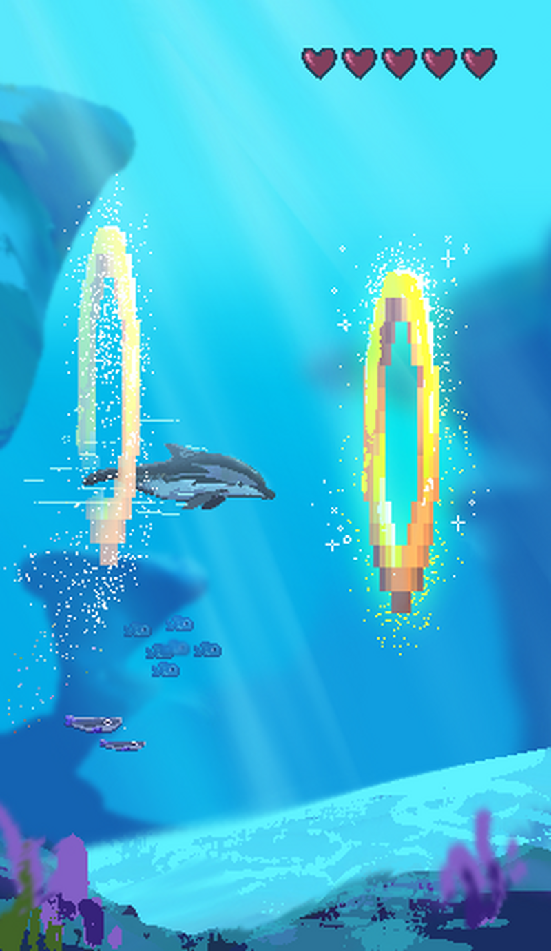 In celebration of Sleepwave's launch, Sleepwave wanted to include a 'hidden secret game' within the app that would demonstrate novel ways the radar technology could be used beyond sleep tracking. I was tasked with creating all visual elements, assets, and animation in the style of a pixel art retro video game themed to the dolphin mascot; Sonari.